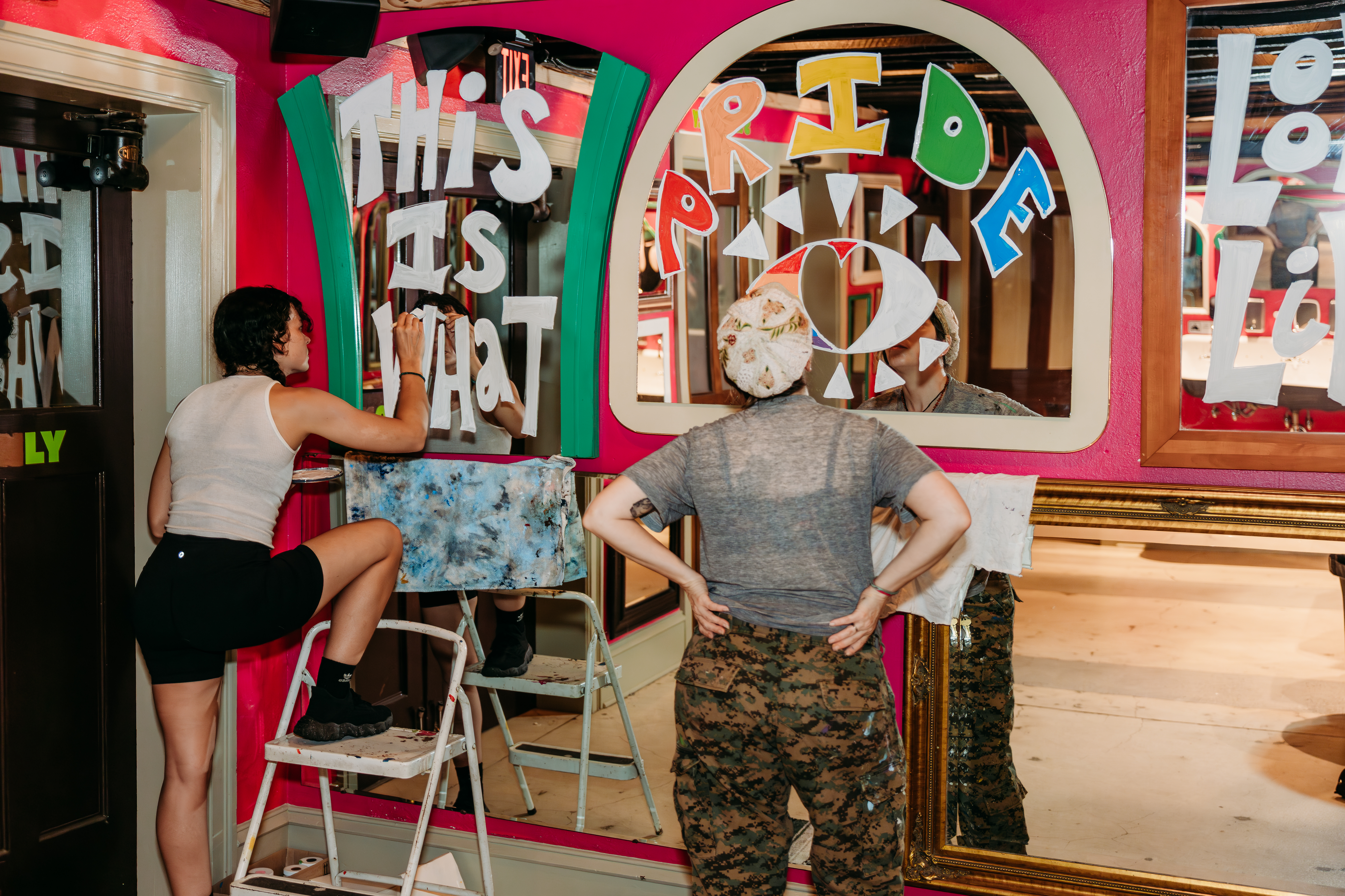 When Theron reached out looking for a photographer for the Lift Pride murals earlier this summer, I was so excited to say yes and be a part of this amazing project. I had a fantastic time documenting Shauna and Renea’s process in creating these murals together. It was obvious they had a great connection, which led to efficient work days (even in the sweltering heat some days!). Shauna worked really hard to create a schedule that fit for everyone, and her input was crucial, providing clear goals for my set of finished photos. Throughout the painting and implementation of these murals, many community members walked by and observed their progress. The vision worked really well- folks from the queer community were already stopping by to “see” themselves in the mirrors and comment on how grateful they were to see representation all over the city. Since then, I’ve seen many selfies and photos taken at the mural locations, and I’m so proud to have been a small part in seeing this project come to life so colorfully and intentionally. Thank you all for asking me to join you on this little adventure and I hope we get to do it again someday!